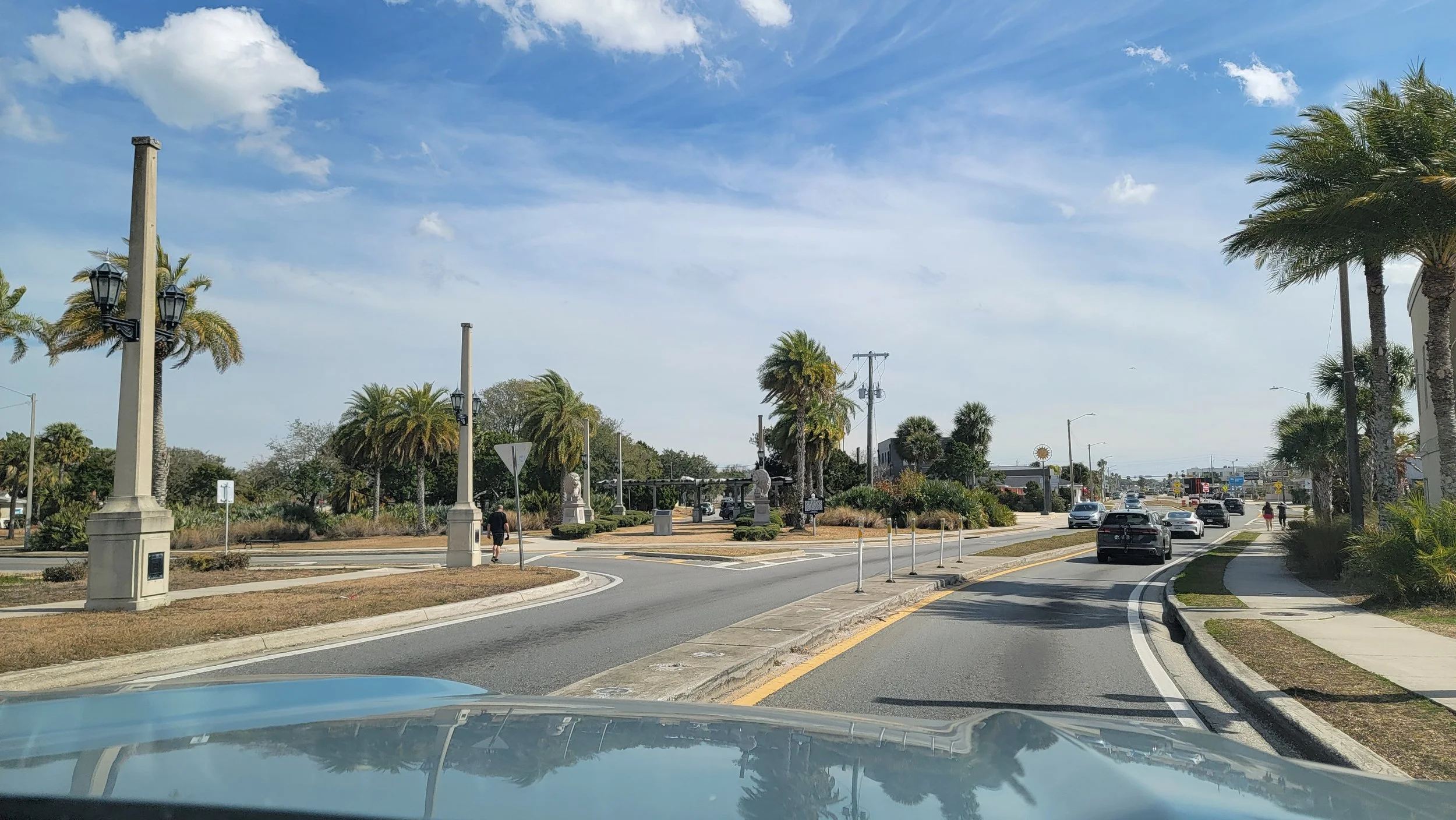 After all this we finally decided to head south. On the way across the river, or right before, we hit it just right to be the third car in line as the drawbridge was going up. I don’t know why, but I think it’s cool to see the drawbridges work. After waiting for that for a couple minutes, we were on our way to Orlando on 95. I was worried about Daytona 500 traffic, but by now whoever was going to the race was already there. It was a windy day, so as we approached Daytona we saw a dust storm, which I’ve never seen in Florida, and a decent sized brush fire in an RV park. Exciting in a bad way. Around Daytona was were we hopped off 95 and jumped on I4, my least favorite road in FL. As we did, we could see the Goodyear blimp over the racetrack. I have seen it a bunch of times before, but it was a first for Kacie.