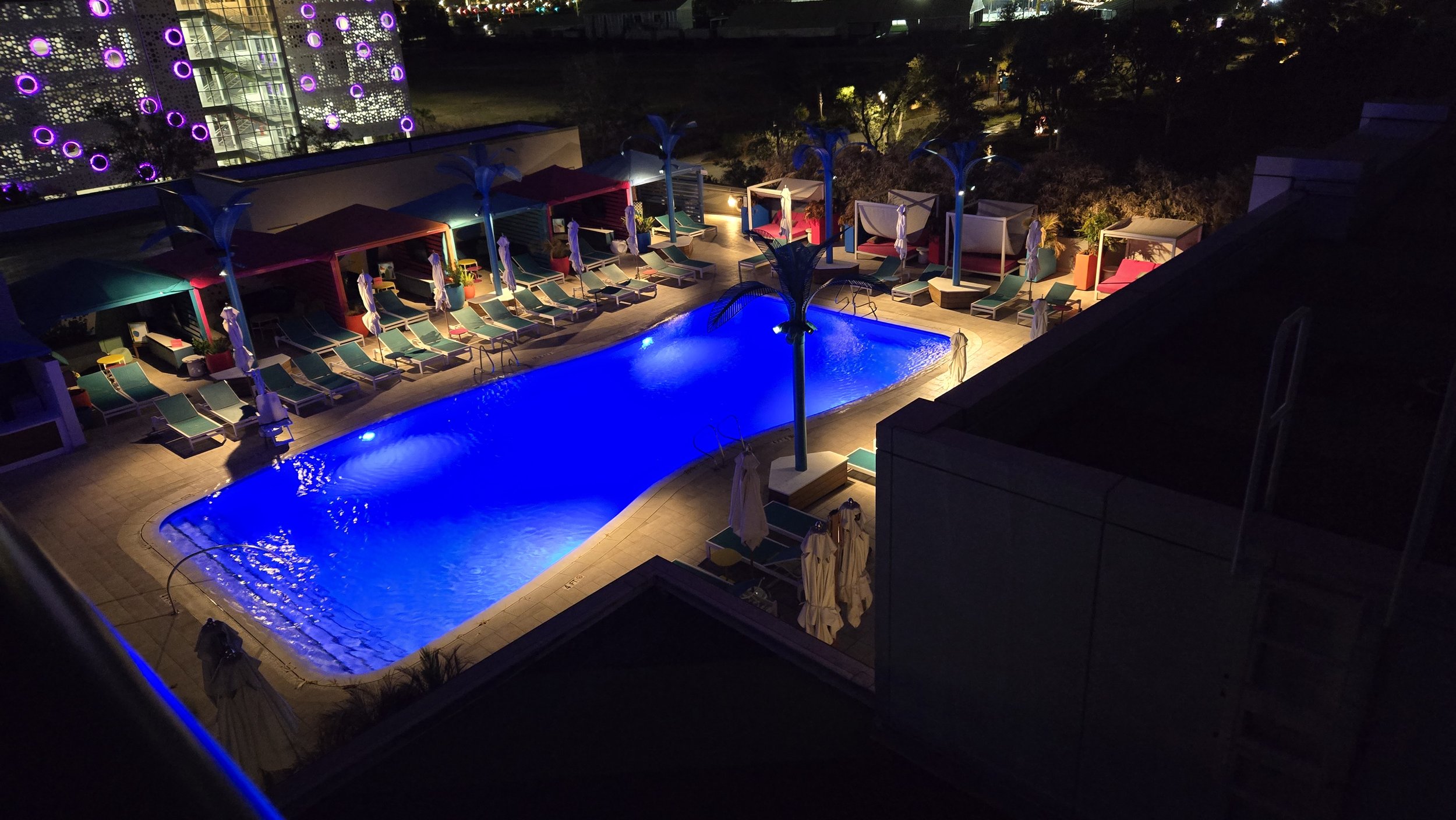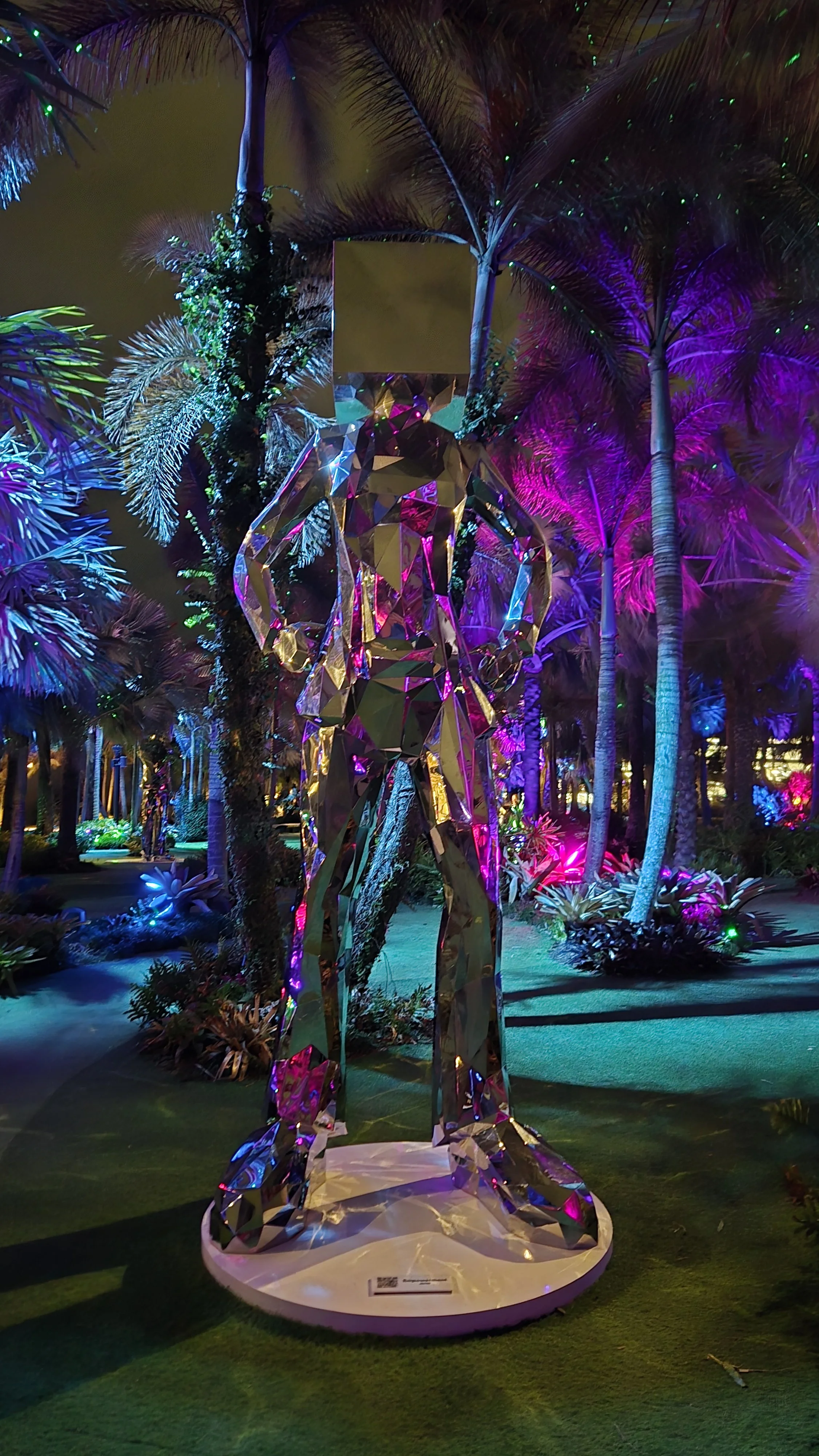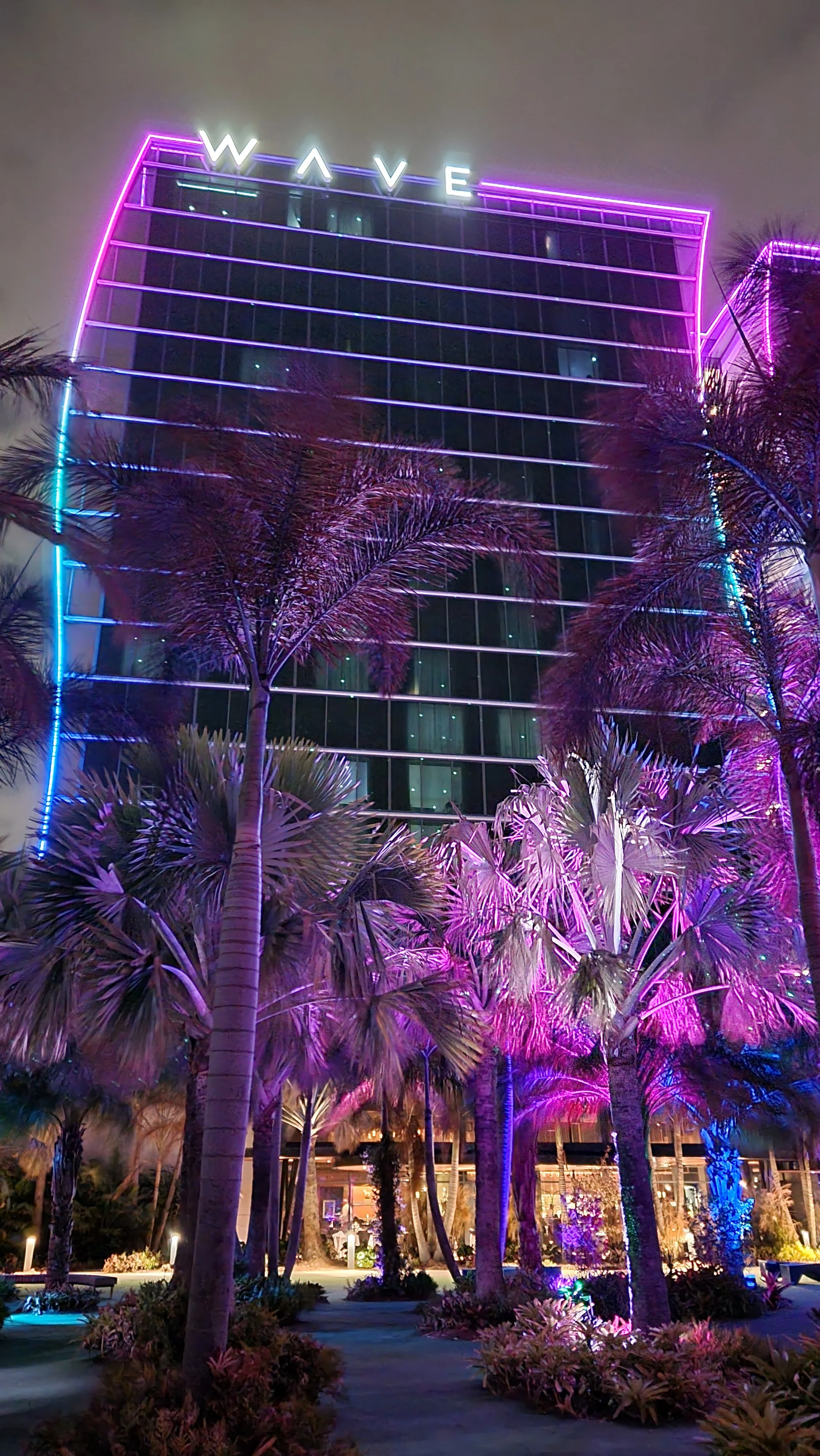 We headed back to the hotel and decided to look around more once we got back. The entire second floor was one of their fancy restaurants. We stood outside of it like homeless people and stared at them for a second before going down to the main floor and taking a quick stroll through the sculpture garden. It was dark by now and they had them all lit with various LED novelty lights. It looked pretty cool though, again, very Florida.