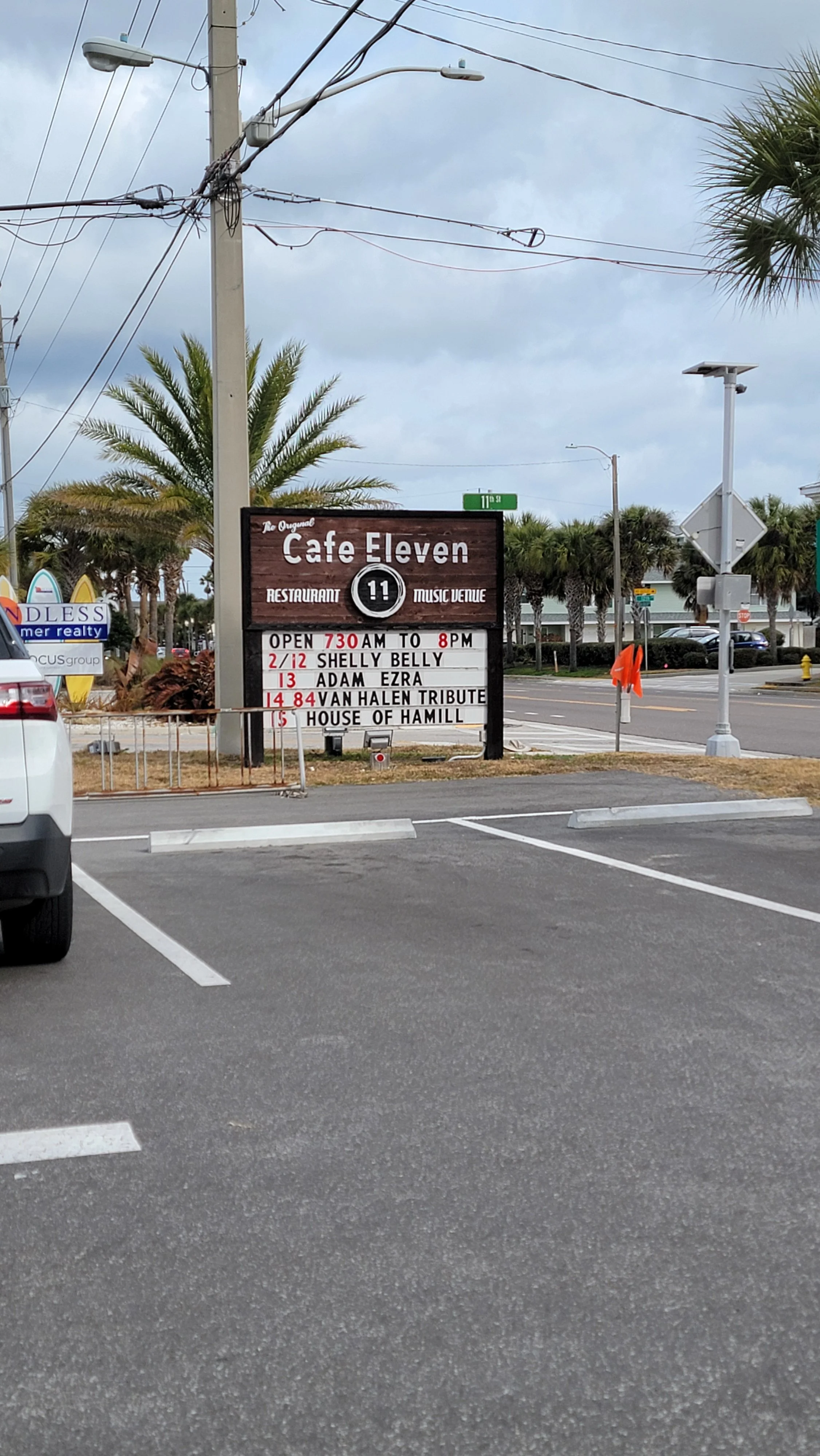 For the last day of our little mini vacation we really didn’t have much planned other than getting down to Orlando and our fancy hotel. We got up around 9 or so and started to pack up the Bronco. Once we checked out we decided to hit a diner to get some breakfast. We had seen one on the way back to the hotel the day before right down the street and figured we’d stop there. Well, it seemed that the old people really loved that one, so luckily for us, there was another place even closer to our hotel that wasn’t that crowded and had a Sunday morning buffet. It was a cool little spot called Café 11 that most of the time was more of a bar/live music venue. They have a lot of band posters on the wall and had the buffet set up on their little stage. They still had their “PA” on either side of the stage, it was adequate for the size of the room, but I’m a snob so I wasn’t impressed. The food was good and the guy that owned the place made a damn good omelet. I talked to him for a while; he’s from NY and has lived here for 30 years. Still had the accent.